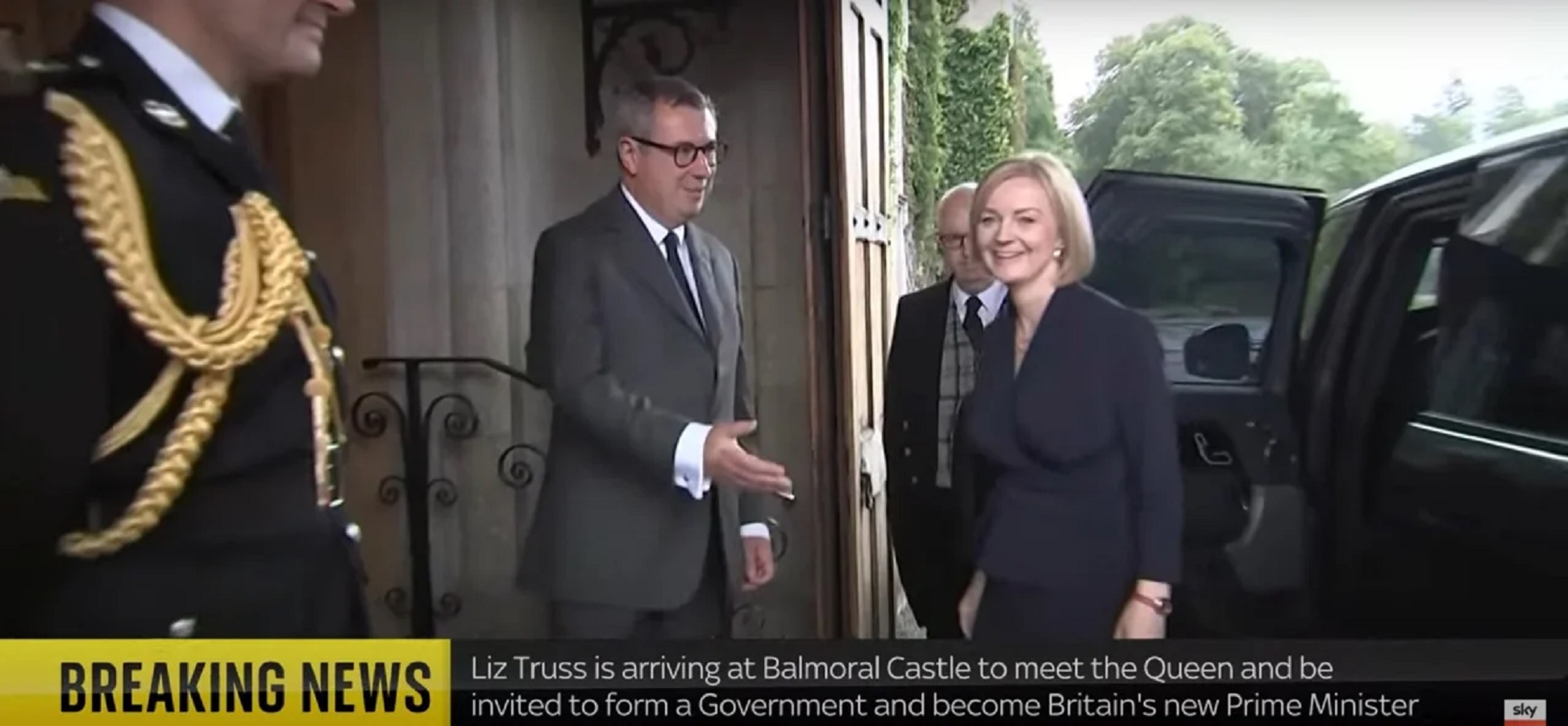 Около 14:20 Кортеж Лиз Трасс прибыл в замок Балморал, где состоялась ее встреча с королевой для формального назначения. Встреча с королевой была назначена ориентировочно на 14:10, но прилететь в Шотландию вовремя самолету Трасс помешала плохая погода.