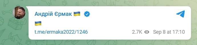 Глава Офиса президента Андрей Ермак после появления видео в соцсетях опубликовал у себя в телеграм-канале эмодзи с украинским флагом.