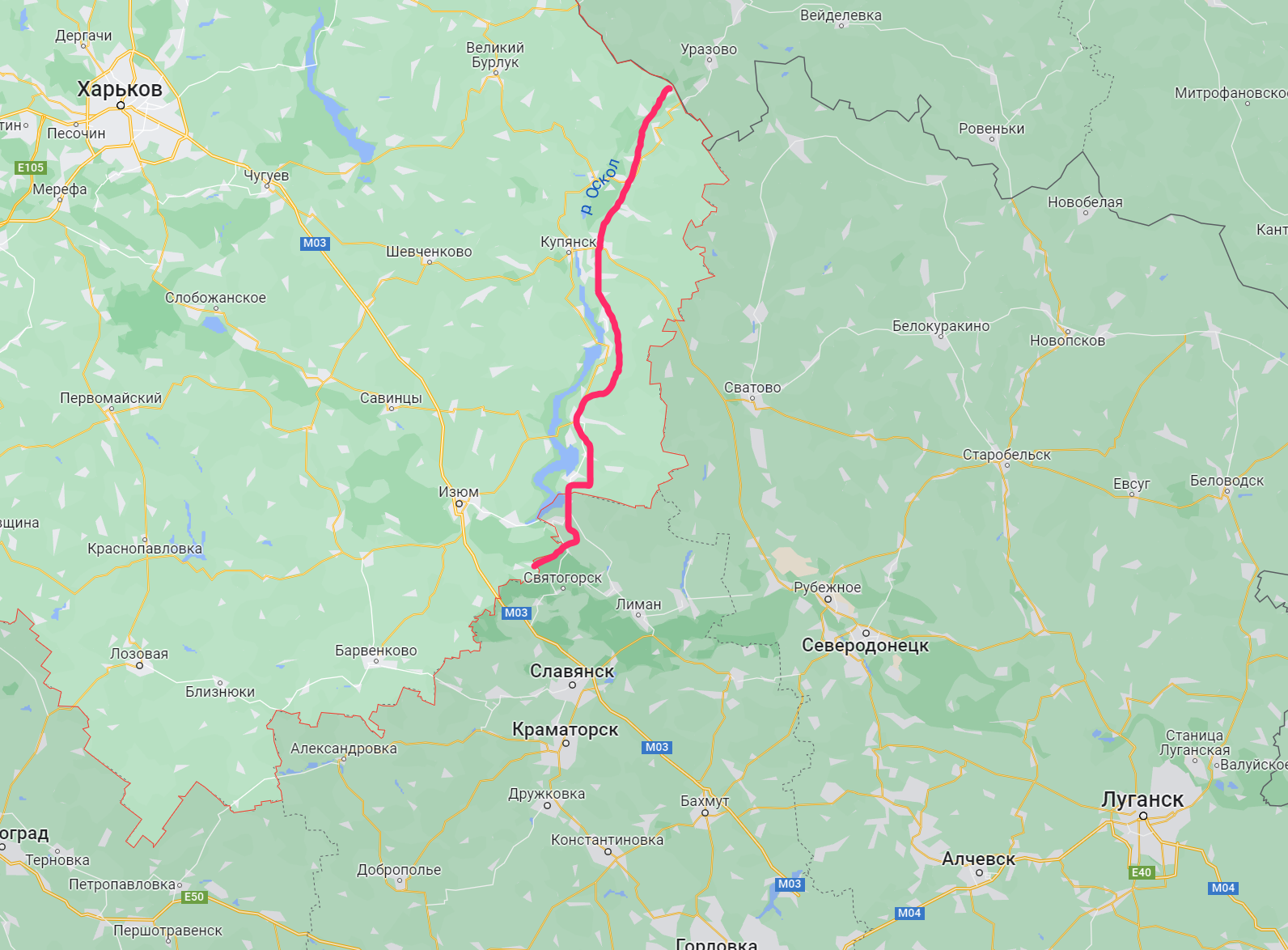 Тот факт, что река Оскол станет главным оборонительным рубежом РФ на окраине Харьковской области, говорит и карта  российского минобороны, которая была официально опубликована сегодня.