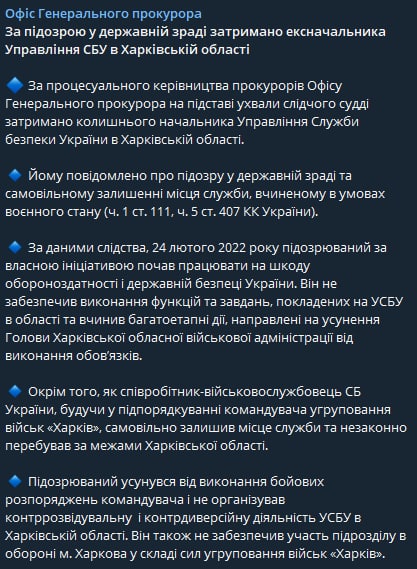 Следователи СБУ сообщили злоумышленнику о подозрении в государственной измене.