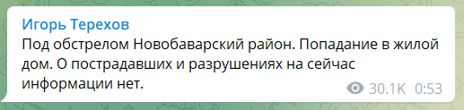 По его словам, попадание пришлось по жилому дому. Предварительной информации о пострадавших и разрушениях не было.
