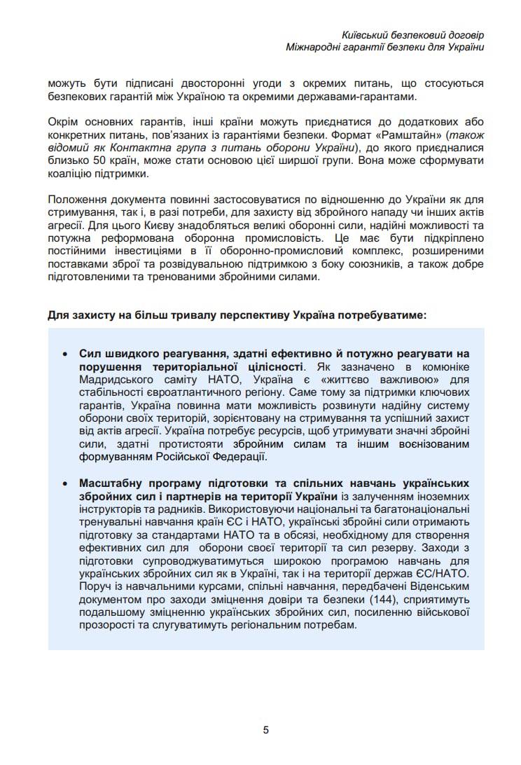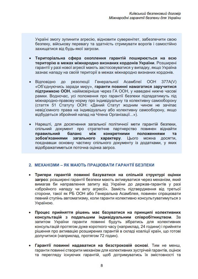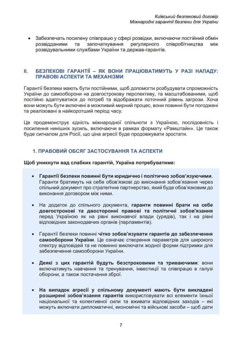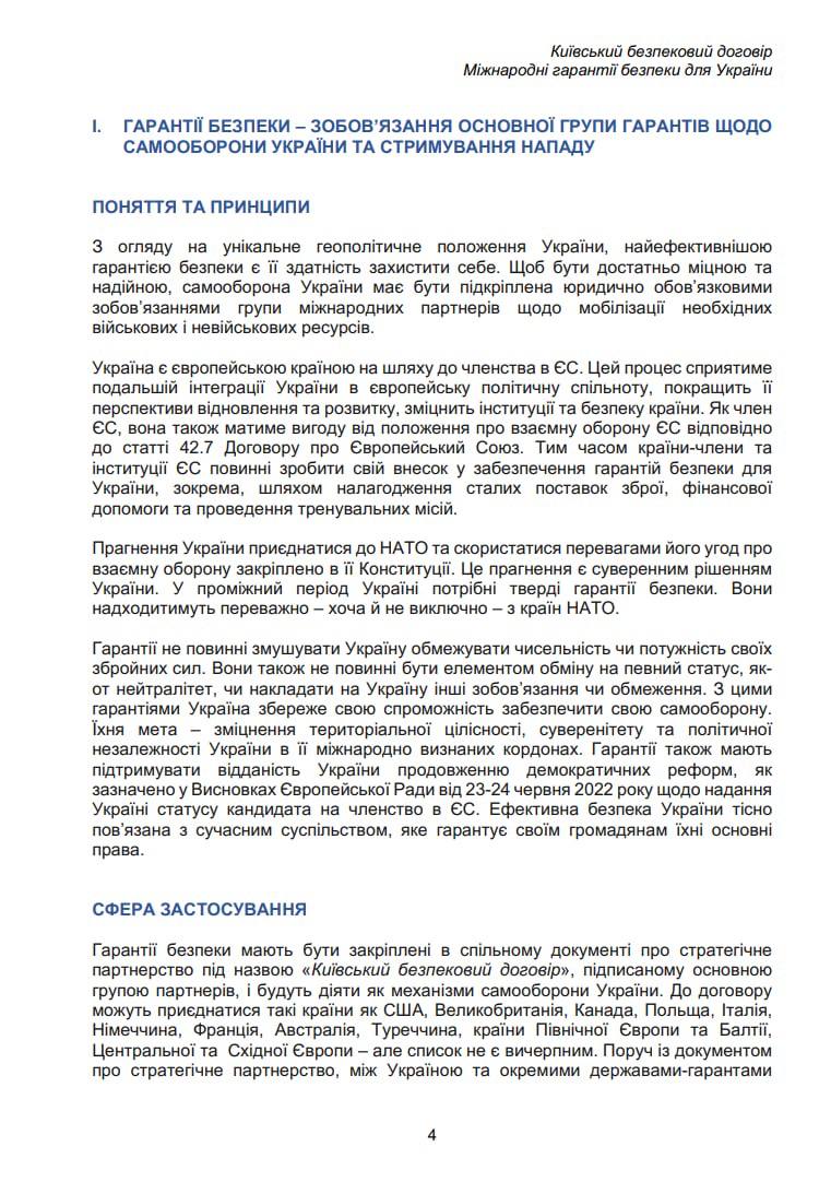 Отдельно в документе отмечается, что договор о гарантиях безопасности не означает провозглашение нейтрального статуса и не отменяет стремление Украины вступить в НАТО.