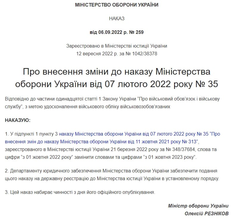 Приказом №259, который датирован 6 сентября, вносятся изменения в другой приказ Минобороны - №35.