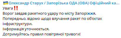 "Информация уточняется. Соблюдайте правила воздушной тревоги!" - добавил он.