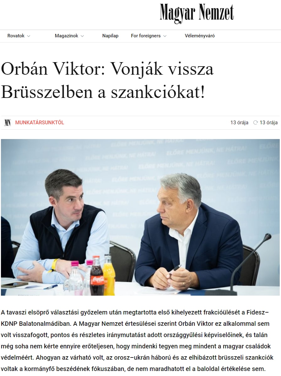 Он считает, что они наносят больше вреда самим европейским странам, пишет газета Magyar Nemzet.