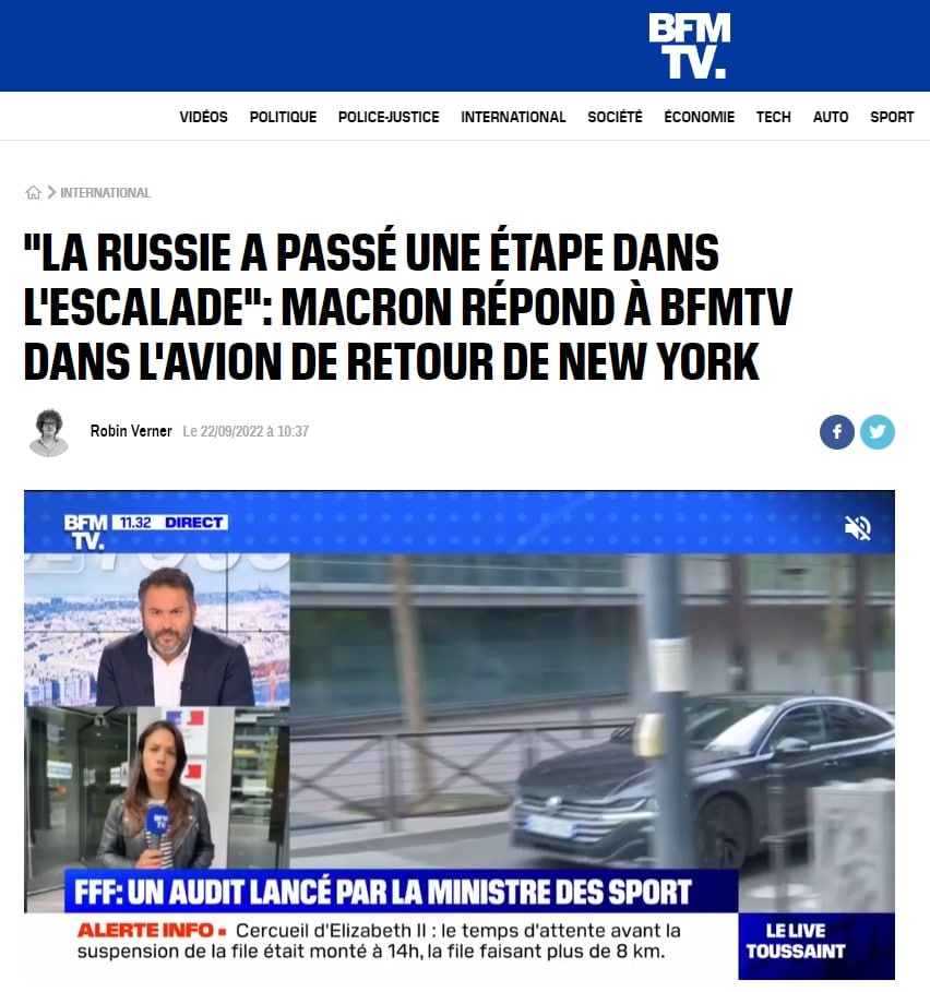 В своей утренней сводке он пишет, что "речь Путина не следует рассматривать как явную угрозу того, что Россия применит ядерное оружие против Украины, если Украина продолжит контрнаступление против оккупированных территорий после аннексии".