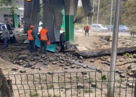 Одна из ракет попала в строение рядом с мостом в Запорожском районе.