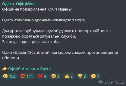 Но, тем не менее, два других беспилотника-камикадзе смогли долететь до порта Одессы и нанести удар.
