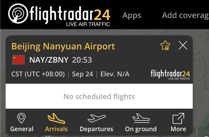 При этом, "Наньюань" (кстати, первый в истории страны) был закрыт еще в 2019 году, тогда же все рейсы перевели в другой аэропорт - "Дасин". А в нем, судя по отслеживающему все полеты в мире ресурсу Fliaghtradar, деятельность идет в штатном режиме, самолеты вылетают и приземляются.