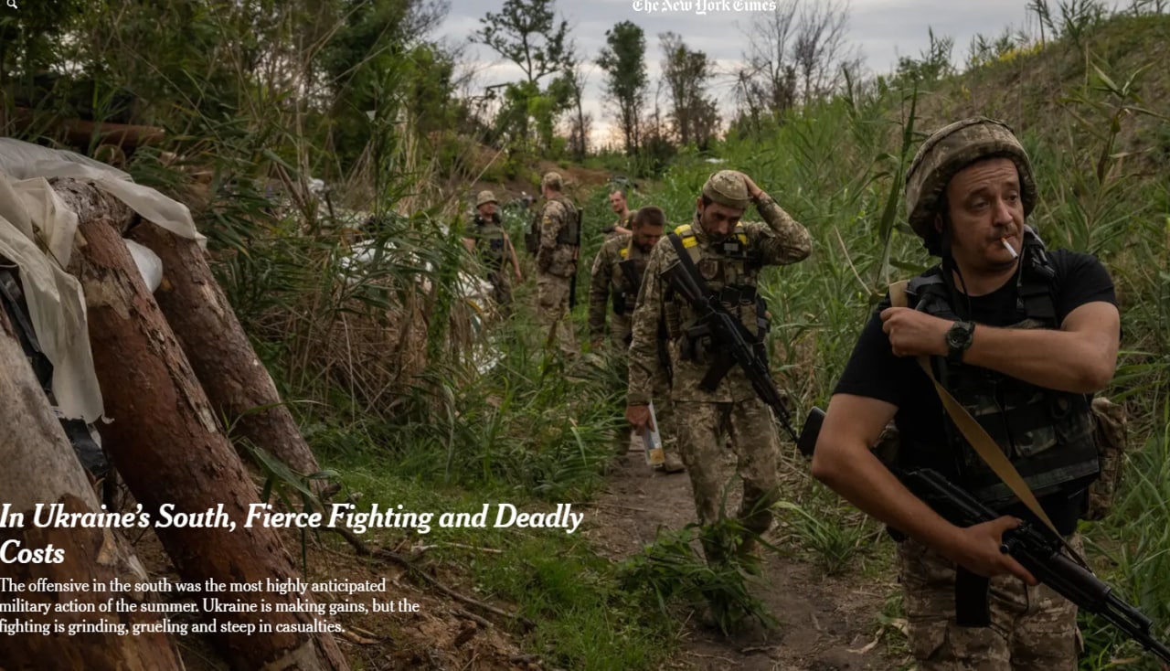 Нынешняя битва за юг Украины - самая страшная за всю войну. Данные о потерях украинской стороной не разглашаются, но после бесед с бойцами ВСУ американский корреспондент вынес ощущение, что потери "большие и даже массовые".