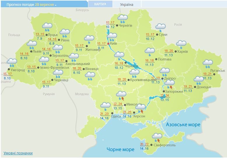 Прогноз погоды в Украине на 28 сентября 2022 года