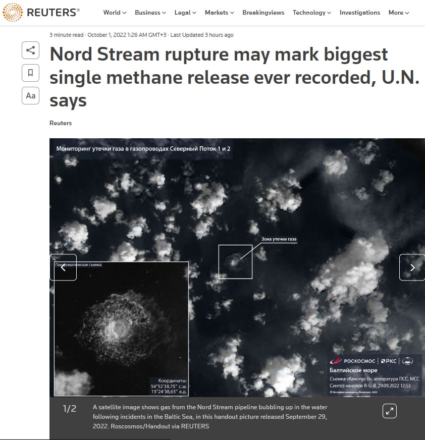 Взрывы на "Северных потоках" привели к невиданному в истории выбросу метана в атмосферу - ООН