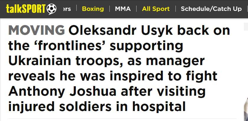 "Его вдохновили солдаты, когда он пошел в госпиталь и посетил их - бойцы, получившие ранения на войне. Усик вошел в палату и увидел более двадцати солдат, у кого не было ног, у кого рук. Все аплодировали. Чувство пребывания там было невероятным, каждый плакал. Они говорили: "Нет, ты нам здесь не нужен, иди туда и дерись", - объяснил Климас поступок Усика в интервью Talk Sport.