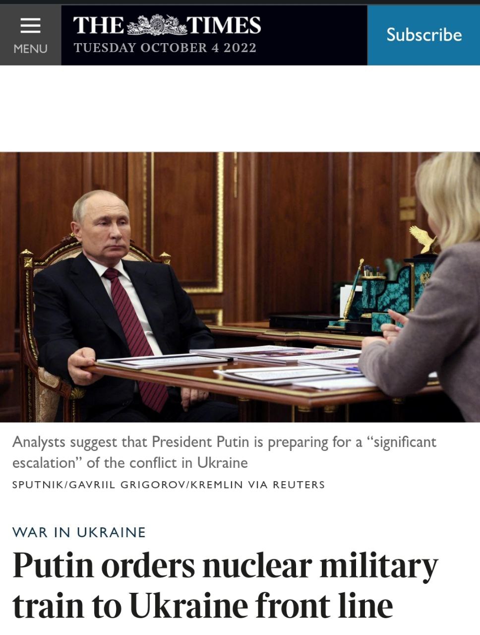 Отметим, что ранее министр обороны Британии называл ядерный удар по Украине маловероятным. Та же риторика идёт из Пентагона.