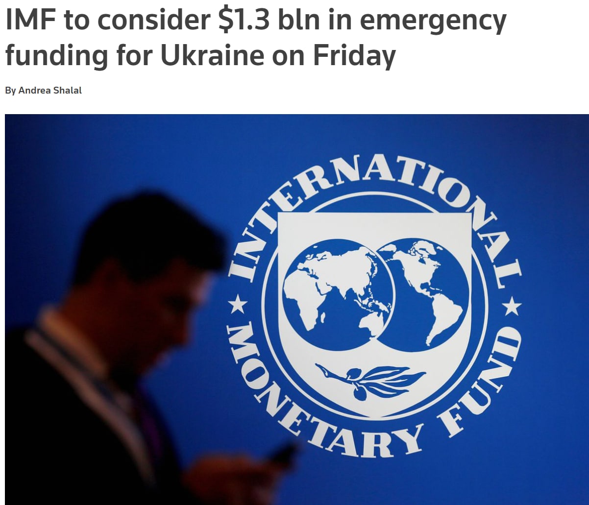 08:30 МВФ в эту пятницу рассмотрит выделение Украине 1,3 миллиарда долларов, сообщает Reuters.