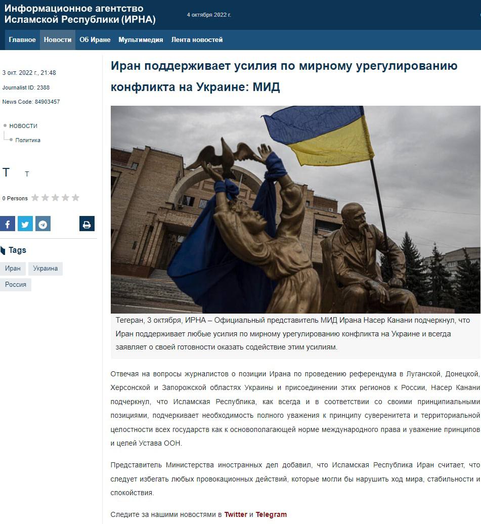 МИД страны поддержал "вхождение новых регионов в состав России" и заявили об "уважении воли их жителей".