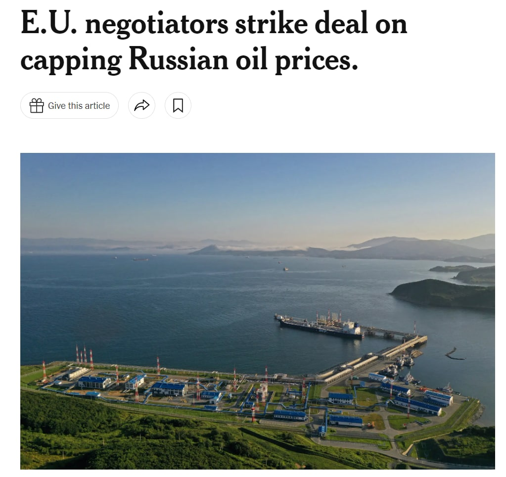 Газета The New York Times описывает, как будет действовать потолок цен на российскую нефть, который вводится Евросоюзом в новом пакете санкций.