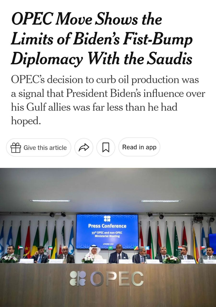 Также констатируется, что для ближневосточных союзников США "сохранение цены за баррель оказалось гораздо важнее, чем заставить Россию заплатить цену за вторжение в Украину".