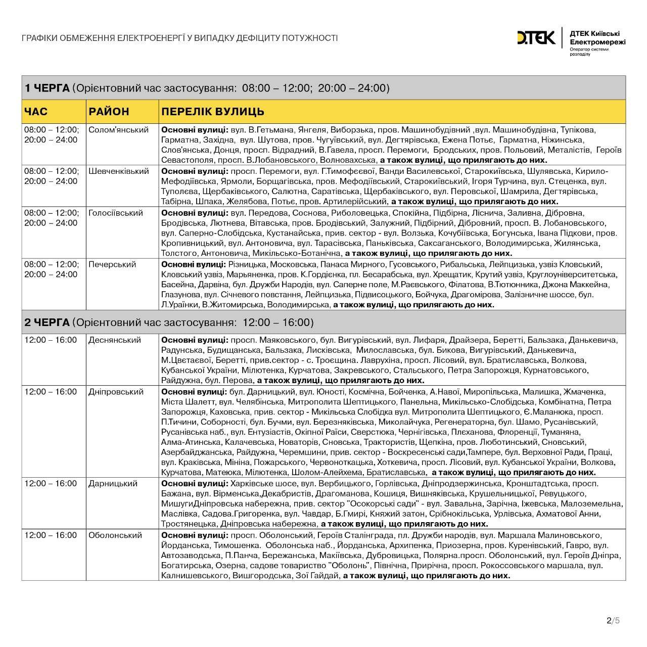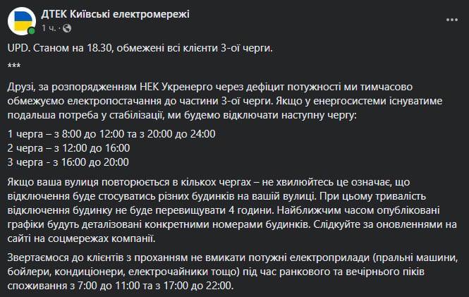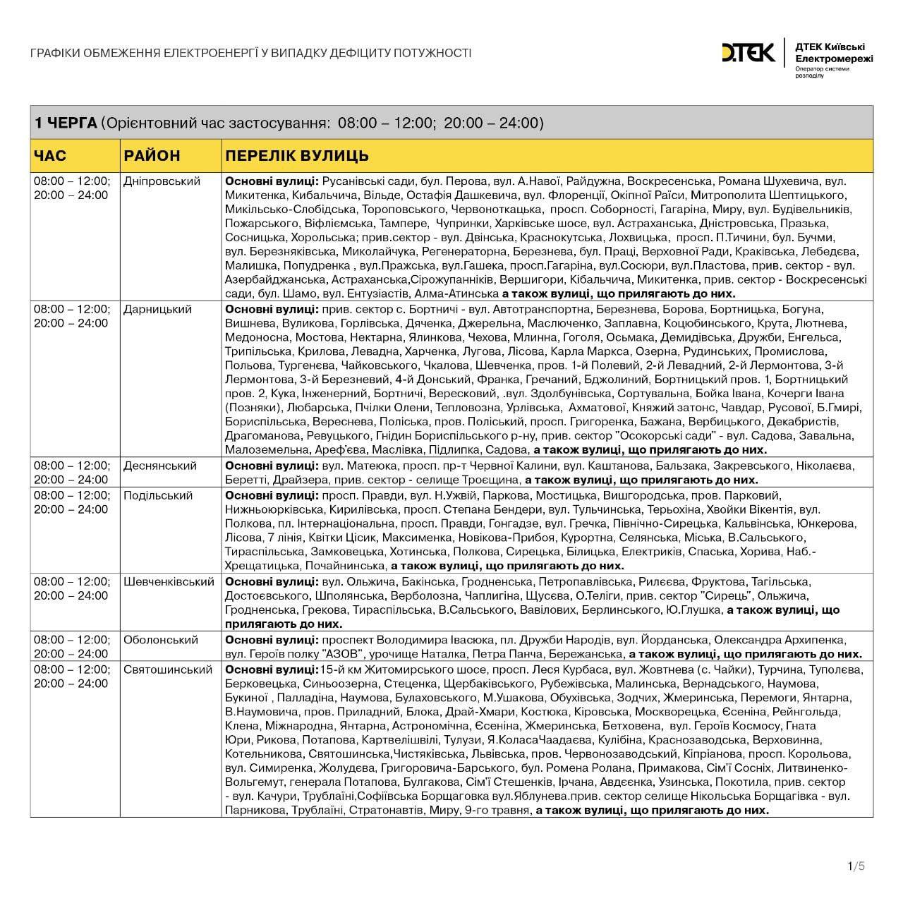 В Киеве и области начались веерные отключения электроэнергии. Полный график трёх очередей в столице