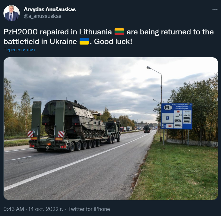 САУ уже в пути на фронт. Фото: Arvydas Anušauskas/Twitter