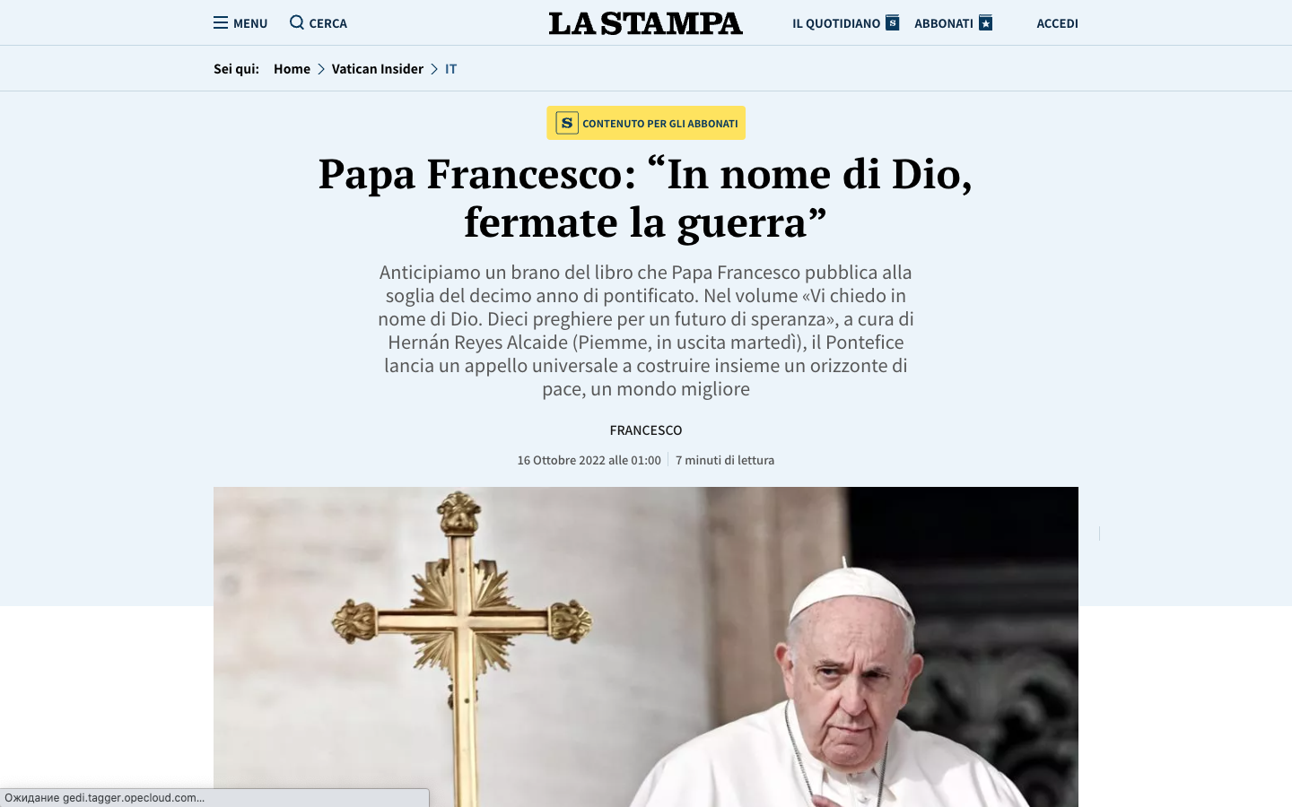 Об этом он пишет в своей будущей книге "Прошу вас во имя Господа. Десять молитв о надежде на будущее", первые цитаты из которой публикует газета La Stampa.