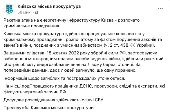 На месте работают следователи, открыто уголовное производство по нарушению законов и обычаев войны, соединенных с умышленным убийством (ч. 2 ст. 438 УК Украины).