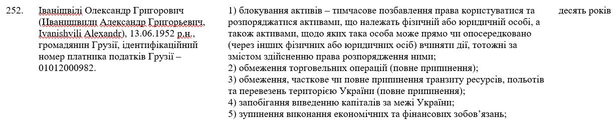 Украина вводит санкции против Александра Иванишвили – брата грузинского олигарха Бидзины Иванишвили, фактического правителя Грузии.