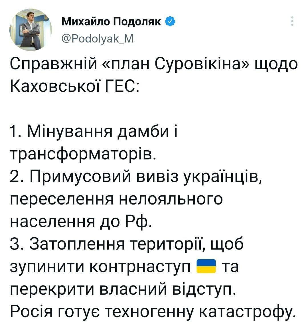 Россия готовит техногенную катастрофу" - написал Михаил Подоляк.