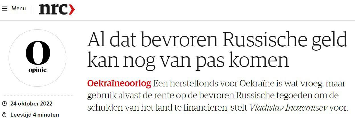 Иноземцев полагает, что для гарантирования погашения процентов по украинским долгам можно использовать проценты, которые начисляются на уже заблокированные на Западе огромные российские активы. При том что сами эти активы после войны будут использованы для восстановления Украины.