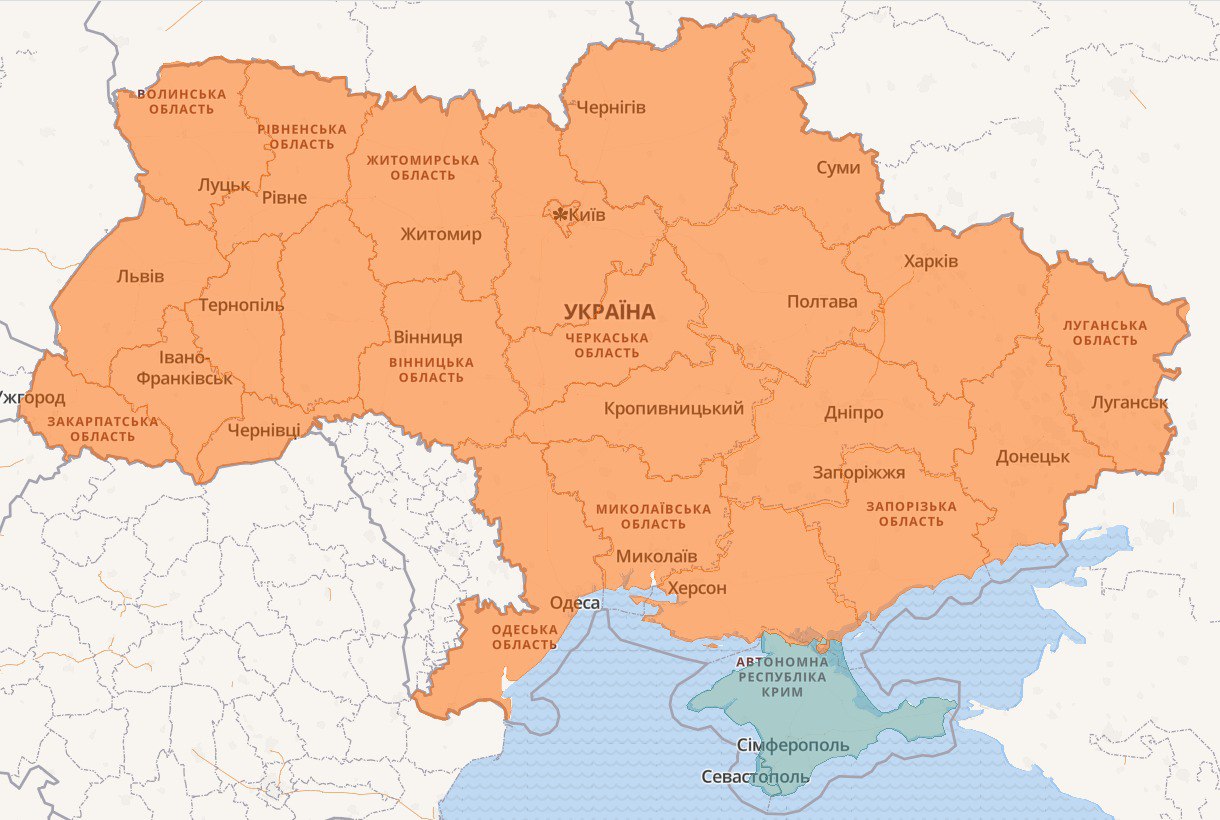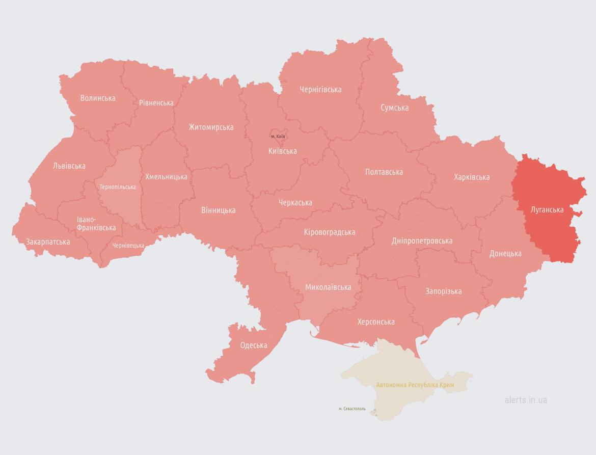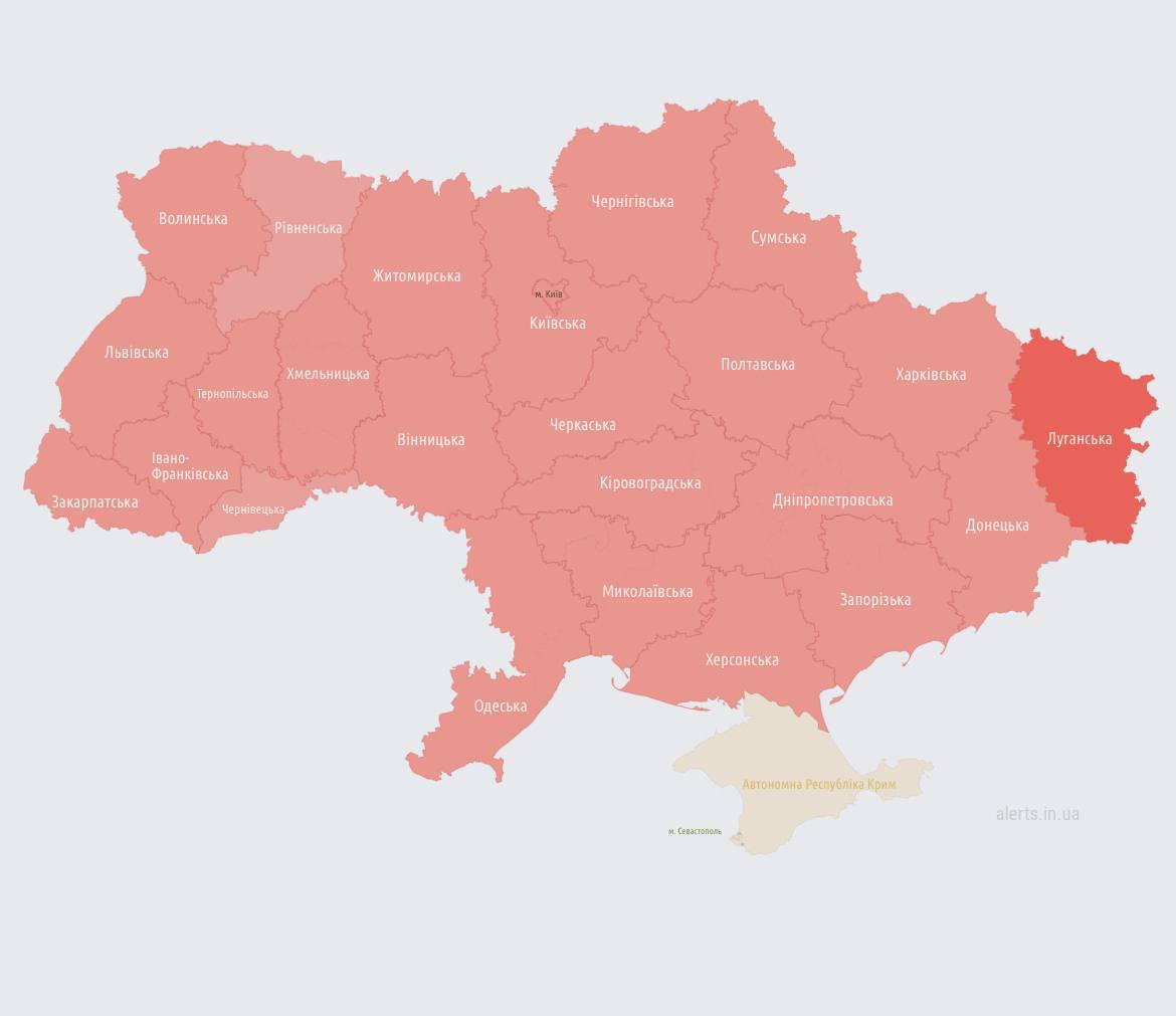 15.20 Воздушная тревога во всех областях Украины кроме Крыма.