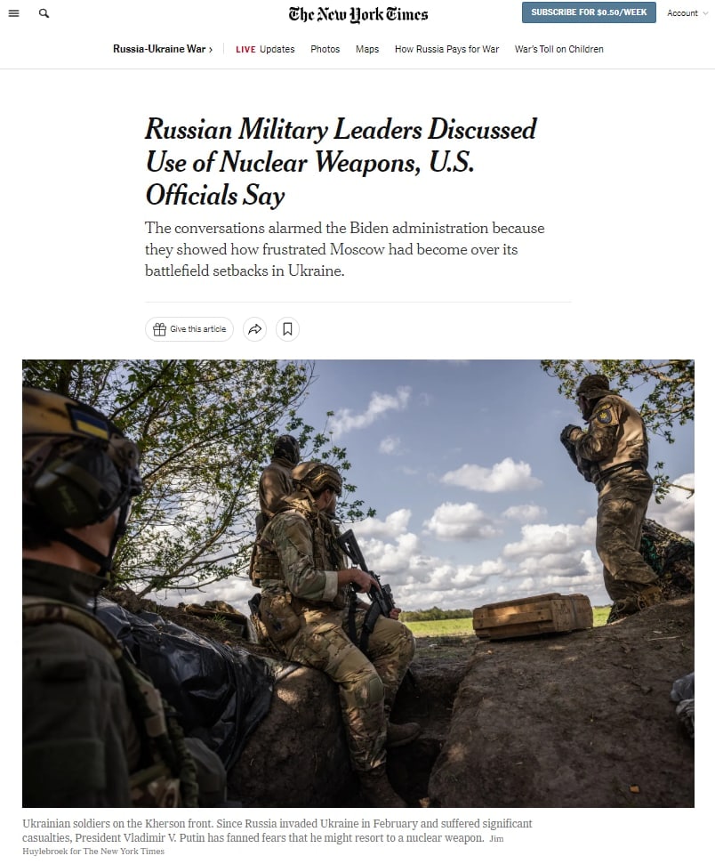 12.30 Руководство РФ обсудило применение ядерного оружия в Украине, пишет New York Times со ссылкой на официальные лица США.