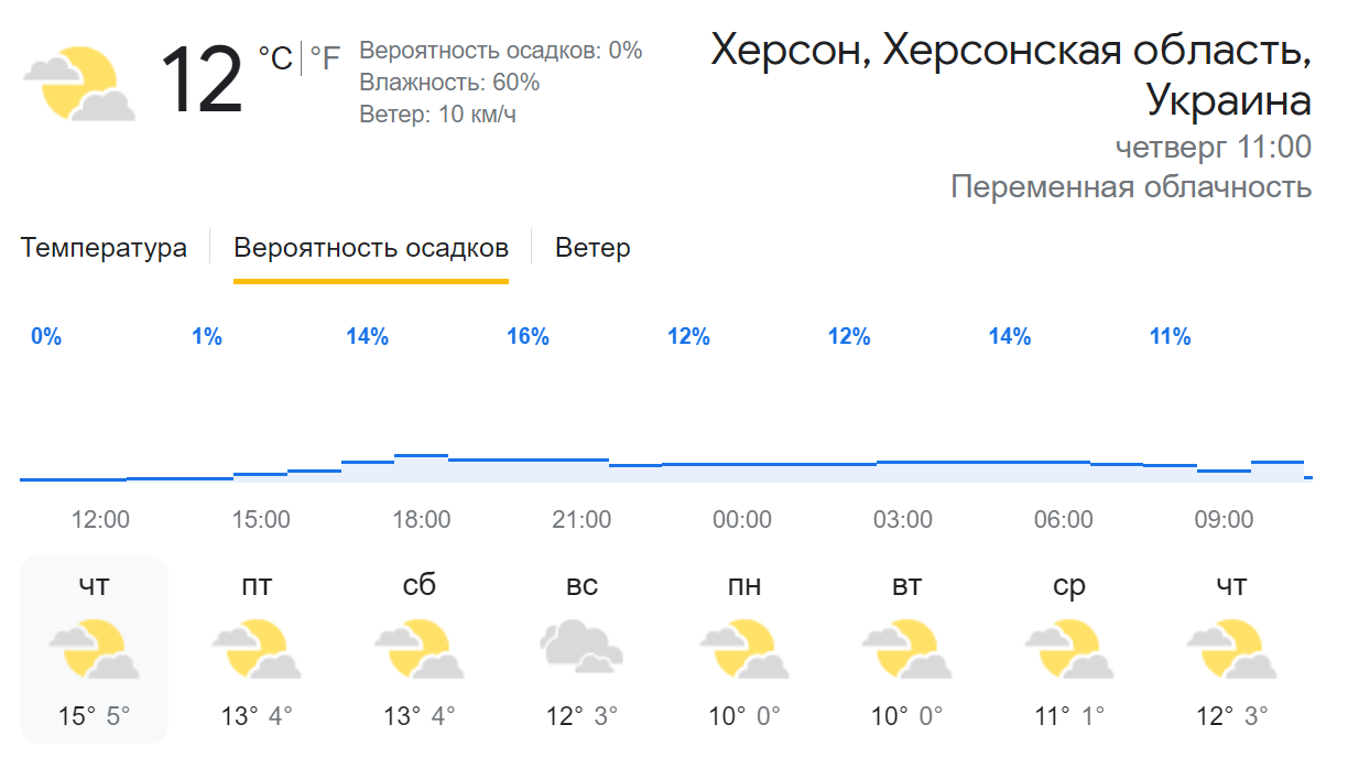 Погода действительно улучшается - судя по данным weather com, на всех основных театрах военных действий от Херсона до Сватово ближайшая неделя обещает быть в основном без осадков. За исключением одного-двух дней. В Херсоне вообще не ожидается дождей.