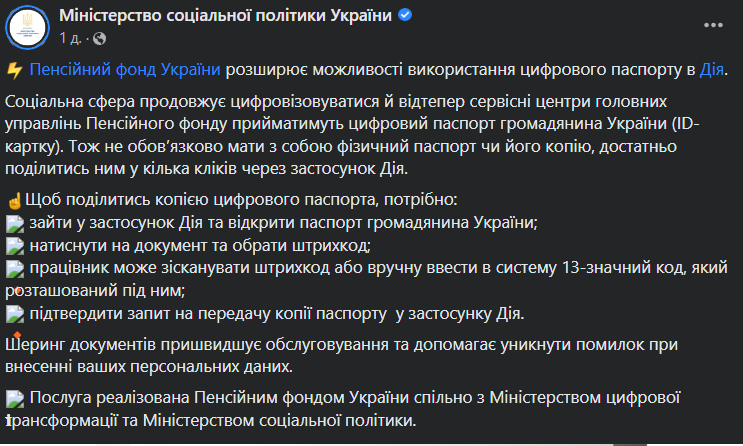 Сервисные центры главных управлений Пенсионного фонда начал принимать цифровой паспорт гражданина Украины (ID-карту).