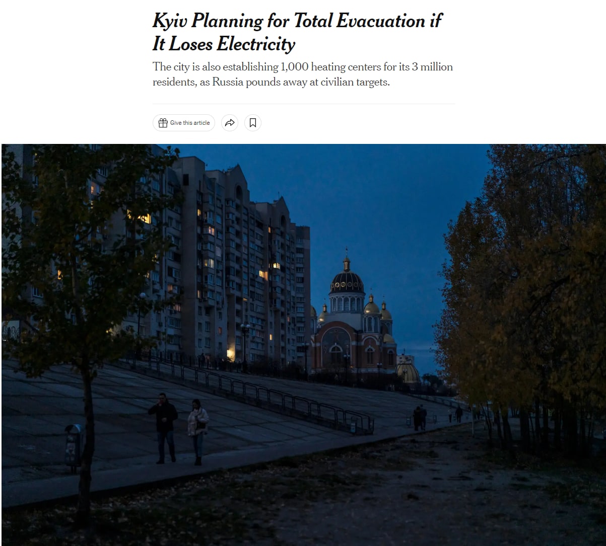 Огромный ажиотаж вызвало допущение мэрии Киева, что из столицы нужно будет эвакуировать три миллиона человек - если ситуация с энергетикой станет еще хуже, чем сейчас.