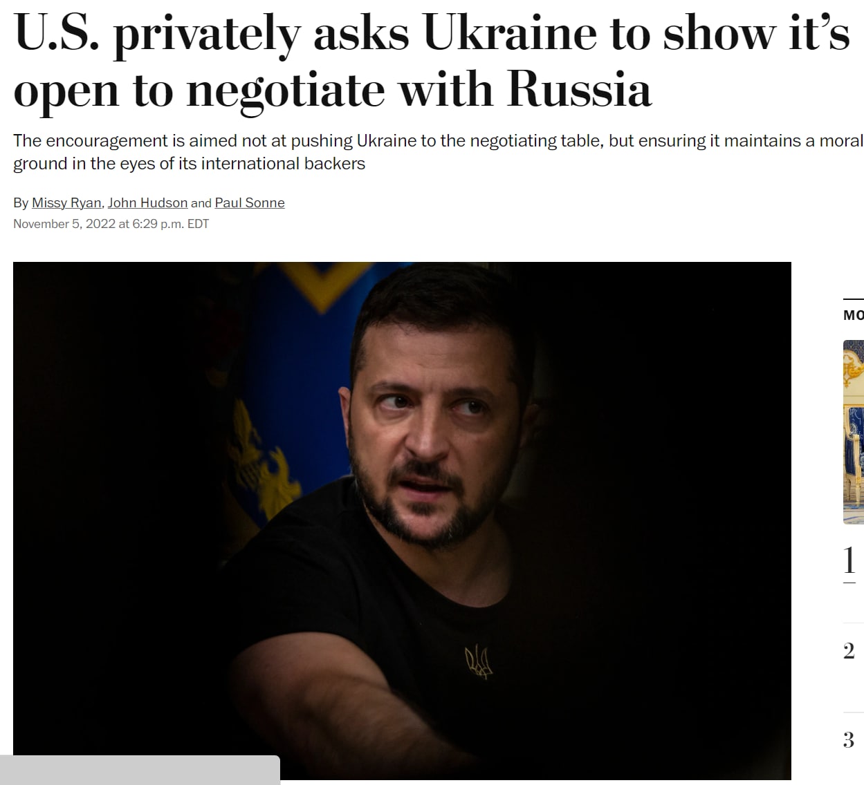 07:55 Правительство США в частном порядке просит президента Зеленского "показать открытость к переговорам с Россией". Об этом пишет The Washington Post.