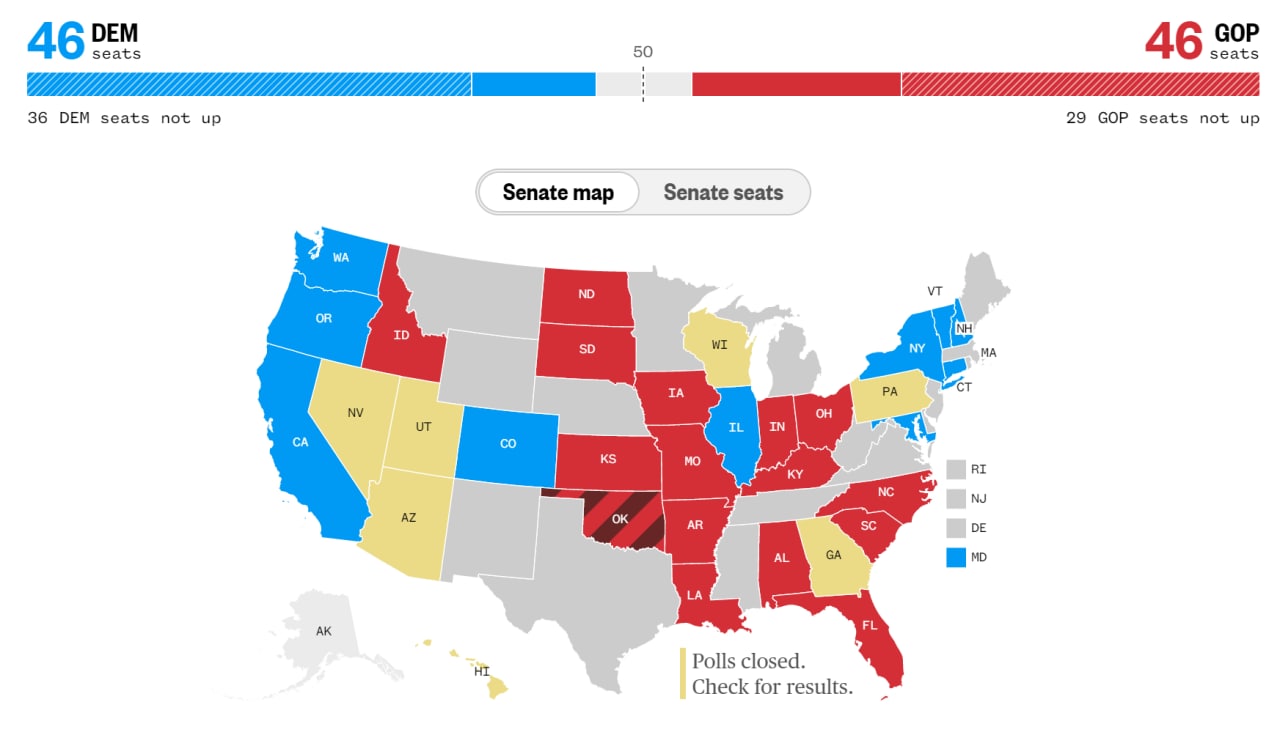 Но борьба за Сенат еще не окончена: решающими могут стать результаты подсчета в Джорджии, Неваде, Аризоне, Висконсине и Пенсильвании.