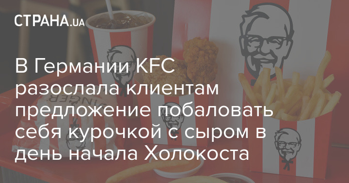 В Германии KFC разослала клиентам предложение побаловать себя курочкой с сыром в день начала Холокоста