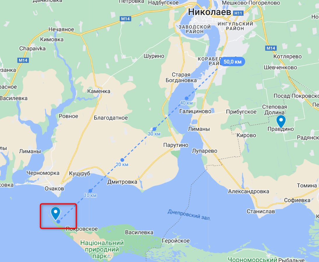Отметим, что от Кинбурнской косы до ближайшего к ней Корабельного района Николаева примерно 50 километров.