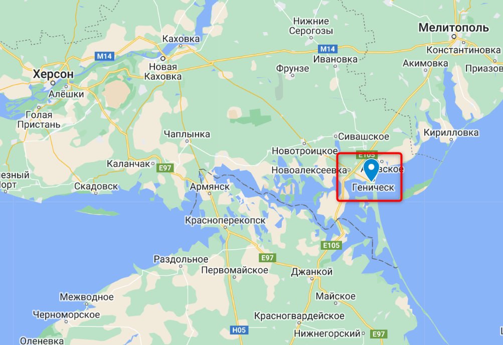 Геническ расположен на побережье Азовского моря недалеко от въезда в Крым через Чонгар. То есть, на максимальном удалении от района действия украинской артиллерии.