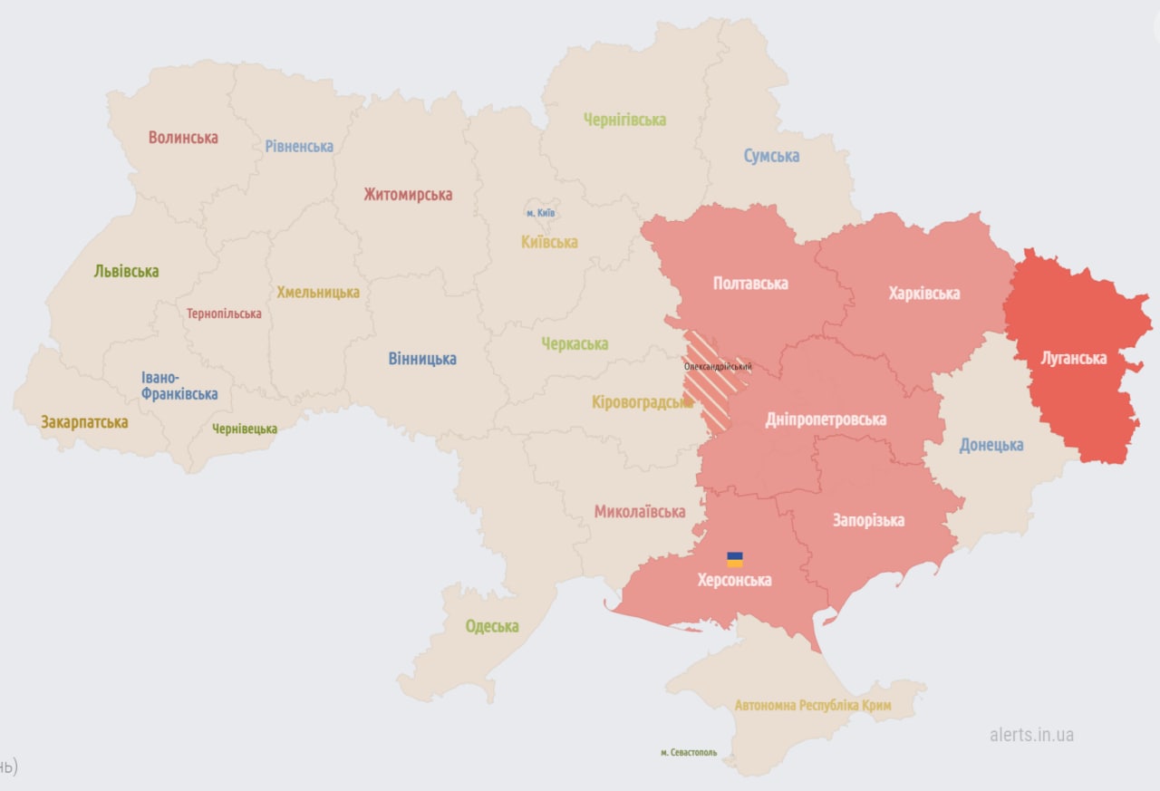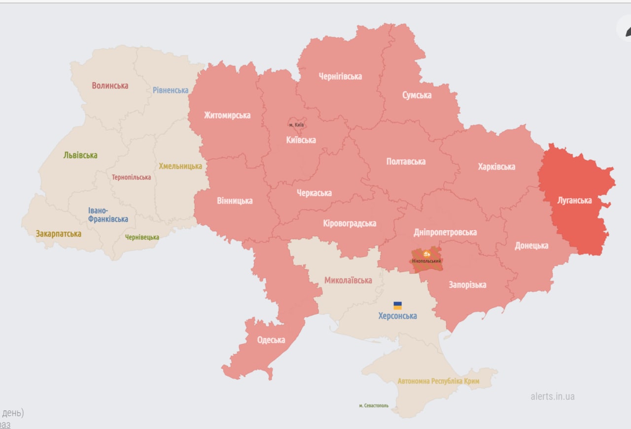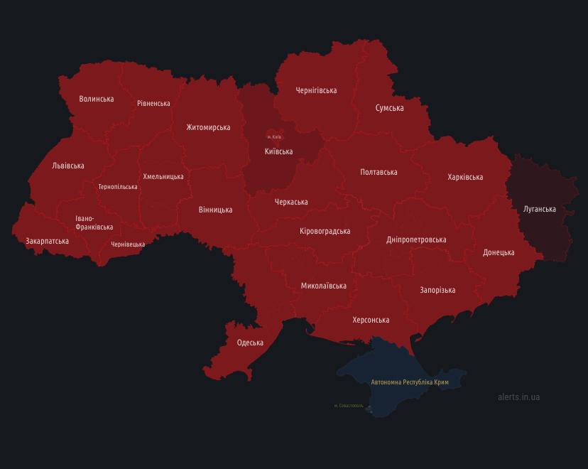 23:32 Большая часть Украины в зоне воздушной тревоги.