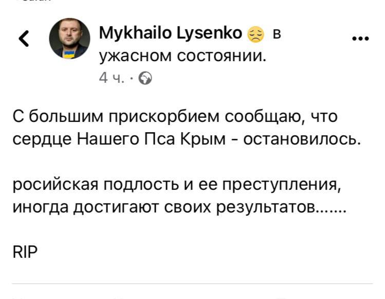 17:48 Умер пес по кличке Крым, чья фотография на руинах дома облетела все соцсети.