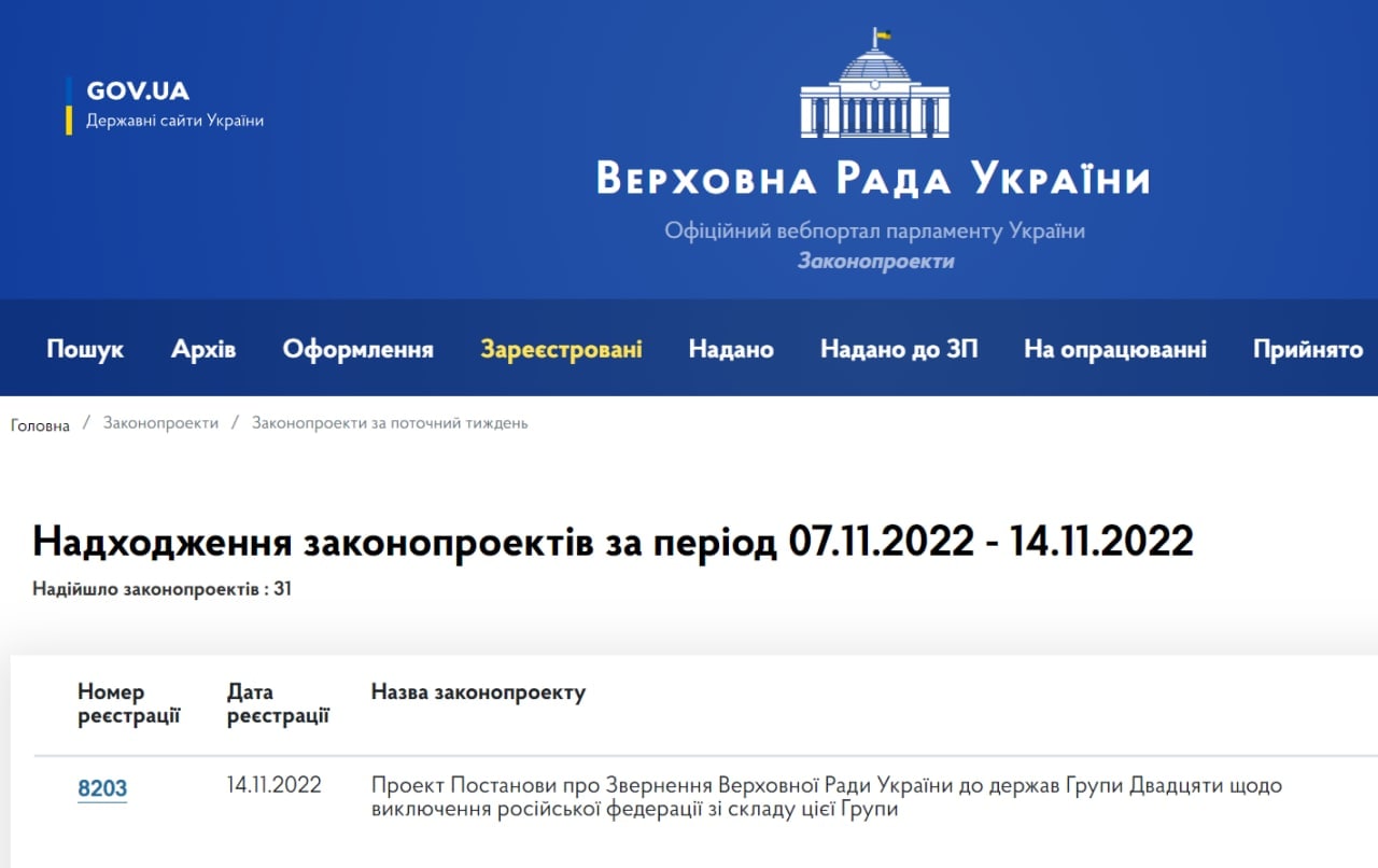 Проект соответствующего обращения появился на сайте Верховной Рады.