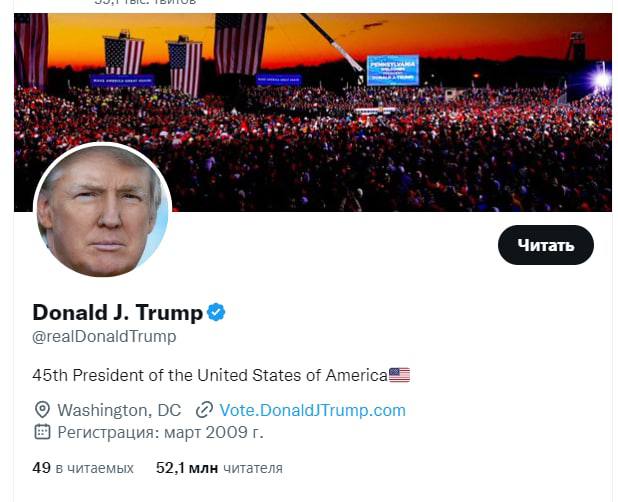 При этом спустя несколько часов у Трампа в Твиттере уже было более 52 миллионов подписчиков.