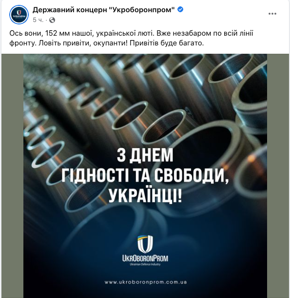 Об этом концерн сообщил в своем Facebook, поздравляя украинцев с Днем достоинства и свободы.