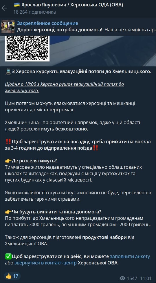 В Хмельницкой области херсонцев обещают расселять бесплатно во временное жилье - в специально-оборудованные школы, садики, общежития, пустые дома в сельской местности.