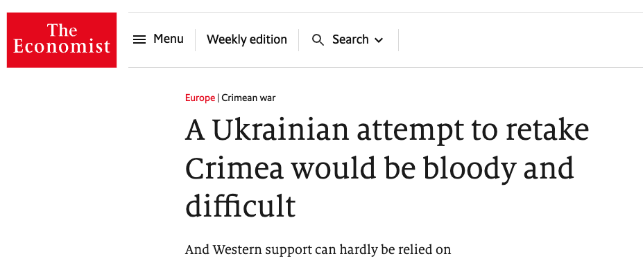 Попытка Украины вернуть Крым будет трудной, кровавой и ее вряд ли поддержат на Западе - The Economist