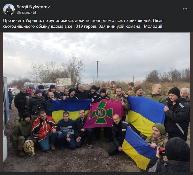 • Рассказал о сегодняшнем обмене пленными: вернулись 4 офицера, 46 сержантов и рядовых.