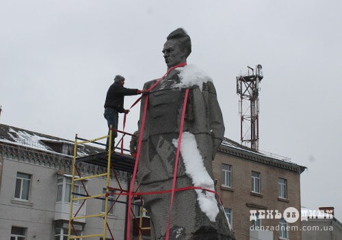 12.30 В Шепетовке демонтировали памятник автору романа "Как закалялась сталь" Николаю Островскому.
