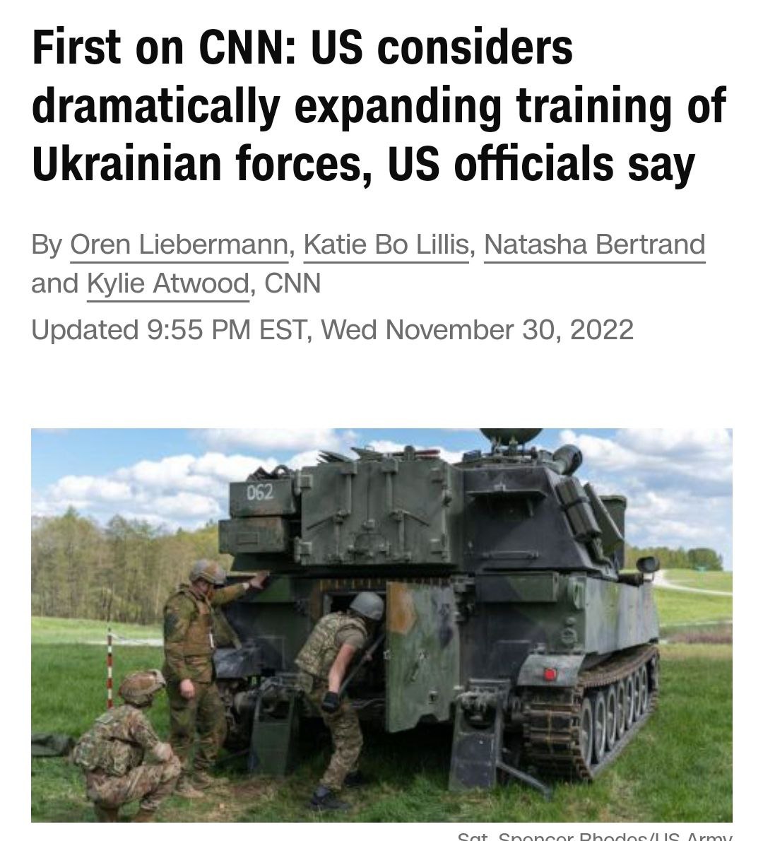 "Согласно новой программе, США начнут обучать гораздо большие группы украинских солдат более сложной тактике ведения боя, включая координацию пехотных маневров с артиллерийской поддержкой", - говорится в материале.