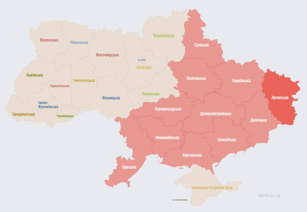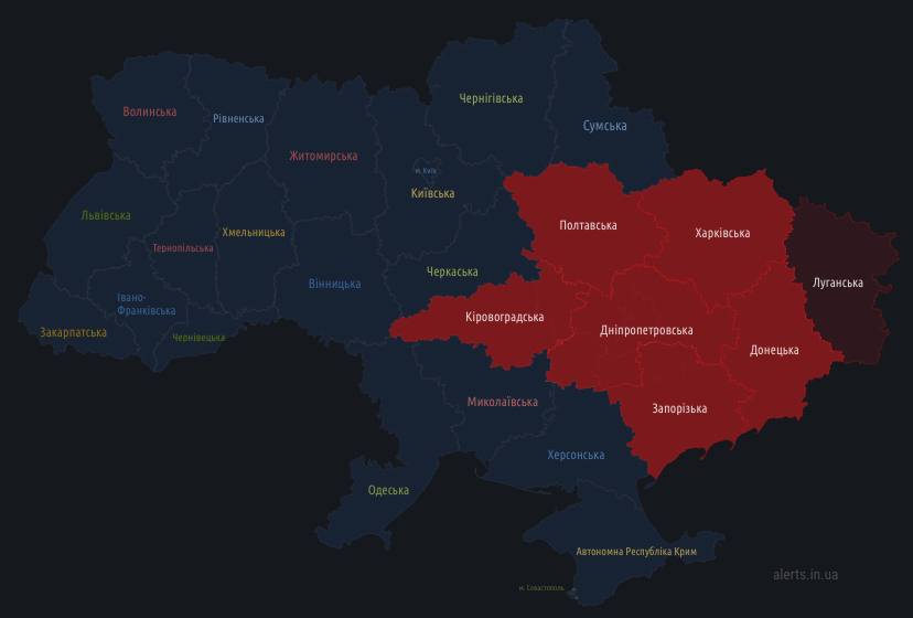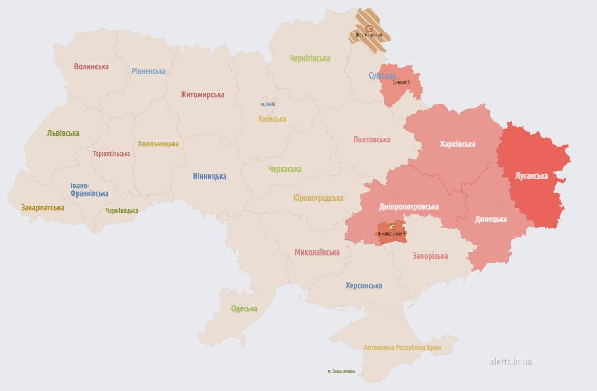 12:43 Карта воздушных тревог сейчас выглядит так.